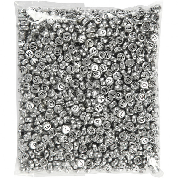Letter Beads, D: 7 mm, hole size 1.2 mm, 165 g, silver [HOB-69933]