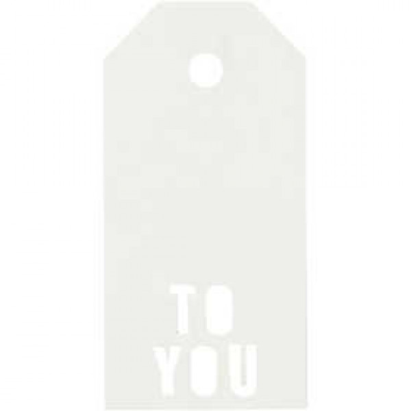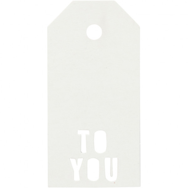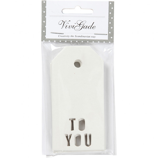 To and from gift tags with a punched motif design by Vivi Gade. Is made of one colour, in strong cardboard with glossy varnish surface on frontside.