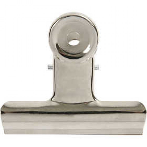 Powerful metal clip to fasten heavy item together or to attach drawings to boards.