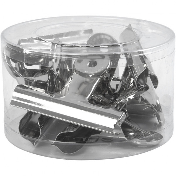 Metal Bulldog Clip, W: 7.5 cm, 6 pcs, silver [HOB-51799]