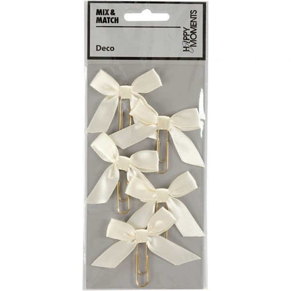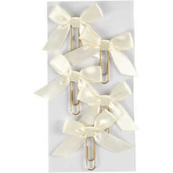 Gold plated metal clip with on-band bow of satin ribbon. Used as decoration and effect on cards, invitations, gifts, scrapbooking, planner and much more.