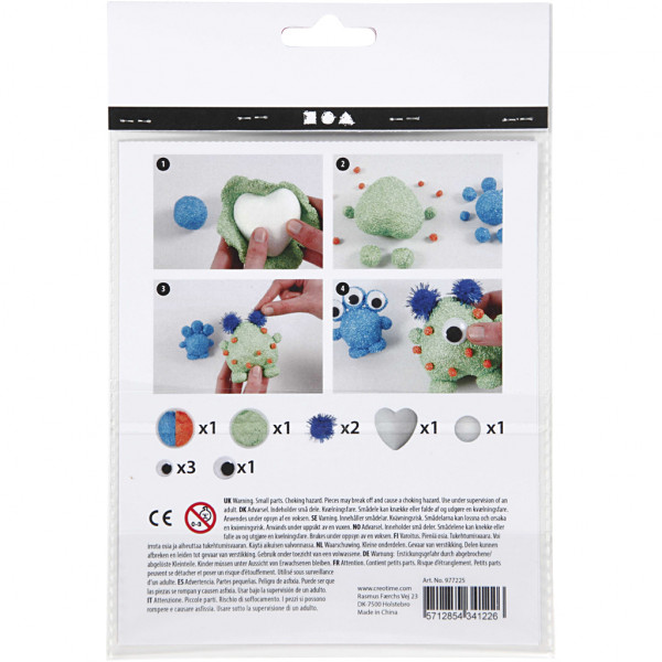 Content: foam Clay in 3 colours, styrofoam heart and -ball, wiggly eyes and pompons.