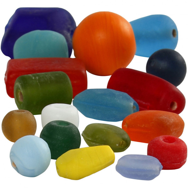 Versatile glass bead mix in many different shapes both with frosted and gloss finish.