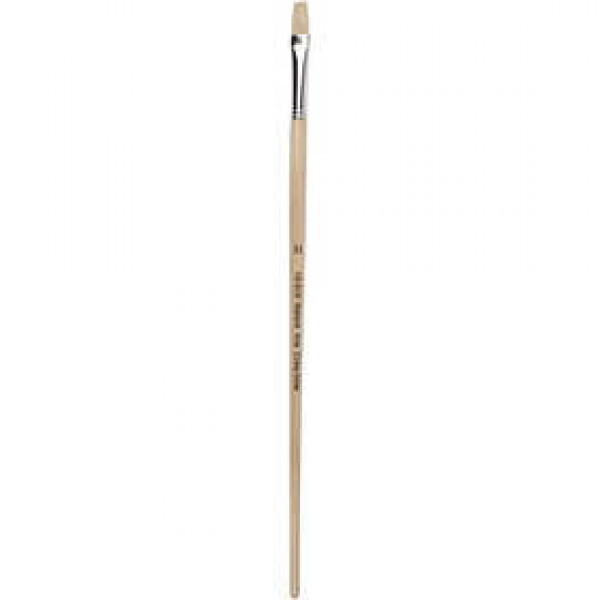 Flat hog-hair bristle brush with long, lacquered wooden handle - ideal for use with heavy-bodied paints.