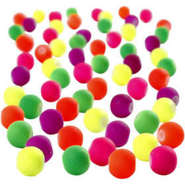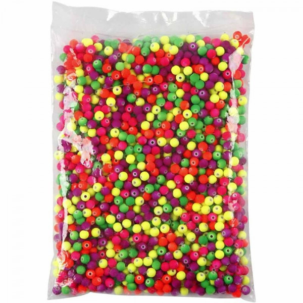 Acrylic beads in beautiful neon colours with a soft, rubbery surface. Pack with five different colours.