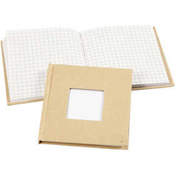 Notebook with a square cut-out and a cover of rough natural paper - 80 sheets with squares.