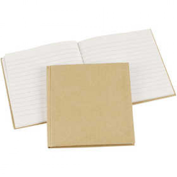 Notebook with 80 sheets of legal-ruled paper and a cover of rough natural paper.