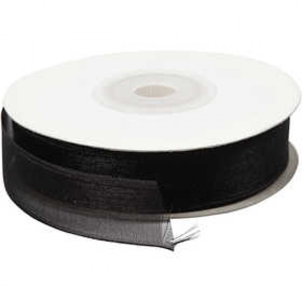 Organza Ribbon, W: 15 mm, 20 m, black [HOB-52124]