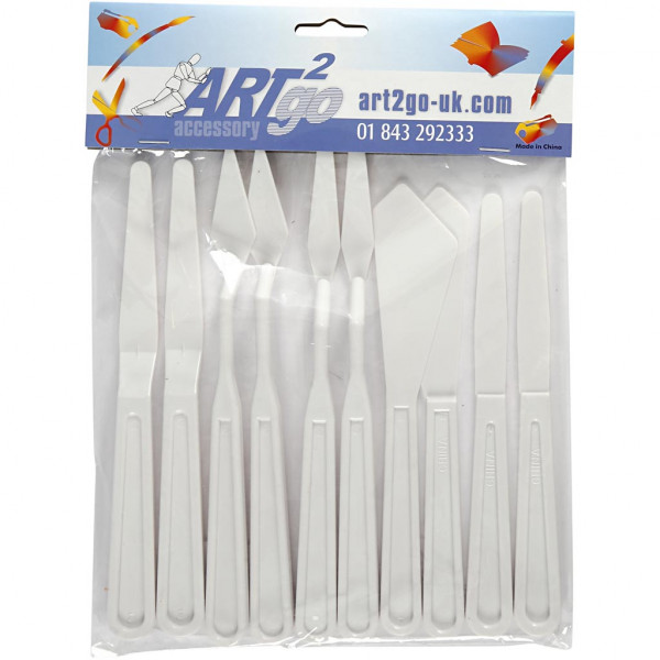 Plastic palette knives in different sizes.