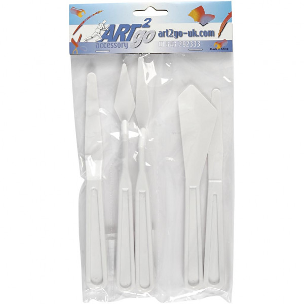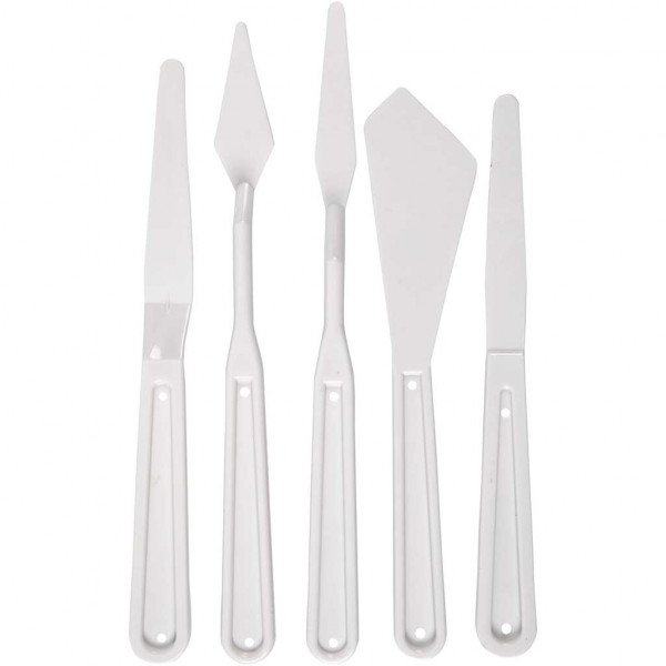 Pack of 5 different shaped plastic palette knives.