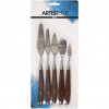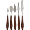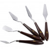 A range of painting spatulas/palette knives with steel blade and varnished wooden handle.