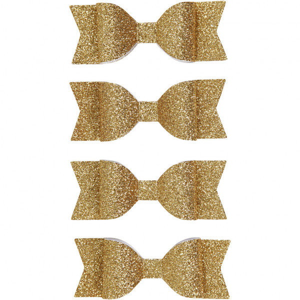 Paper Bow, size 31x85 mm, 4 pcs, gold glitter [HOB-24778]