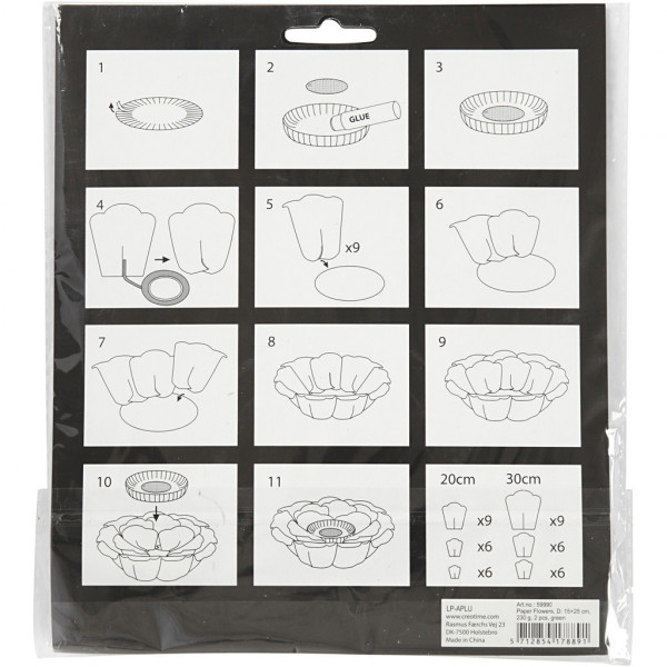 A set for 2 evenly-sized flowers, both containing different parts, stamped in structured card. Detailed instructions and double-sided tape included.
