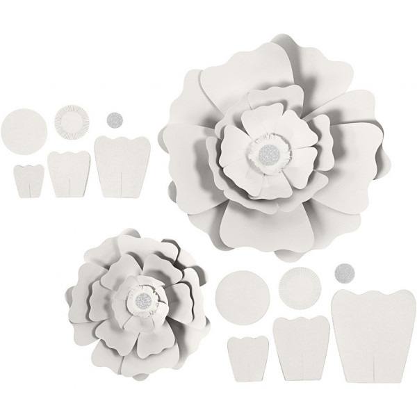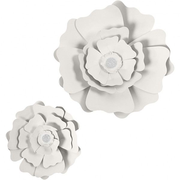 Paper Flowers, D: 15+25 cm, 230 g, 2 pcs, white [HOB-599901]