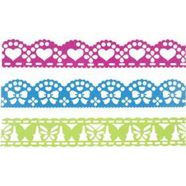 Paper Lace Borders, W: 15 mm, 3x2 m, blue, green, fuchsia [HOB-28443]