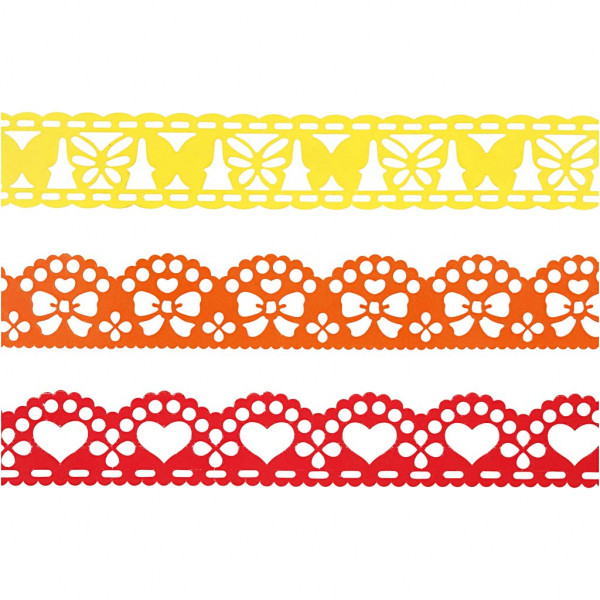 Paper Lace Borders, W: 15 mm, 3x2 m, yellow, orange, red [HOB-28441]