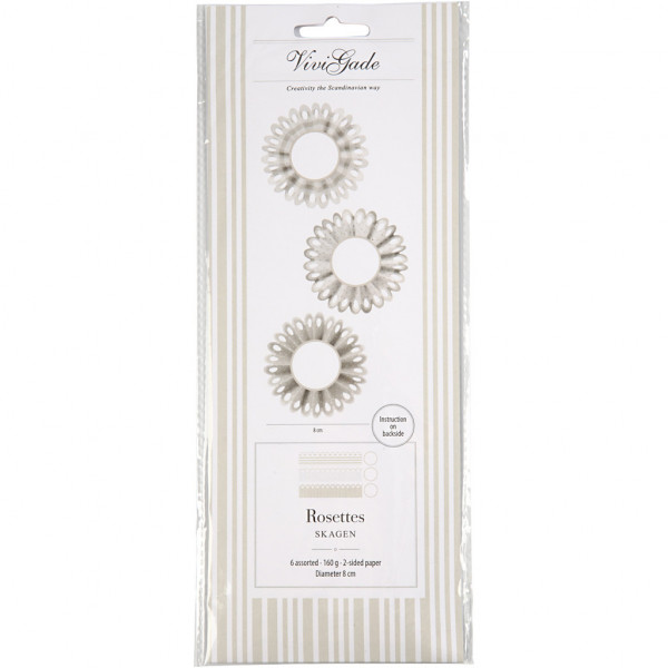 All materials needed to make 6 pcs. paper rosettes from the Vivi Gade Design series.