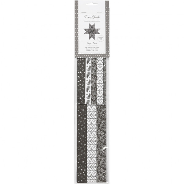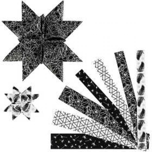 Paper Star Strips, W: 15+25 mm, D: 6.5+11.5 cm, 48 strips, silver, black [HOB-24350]