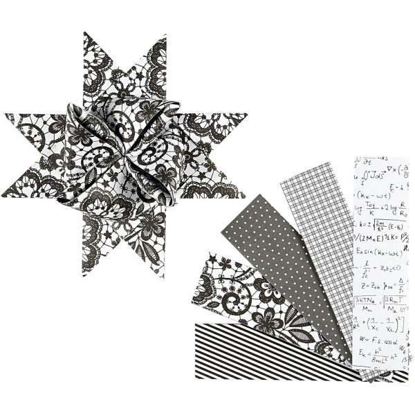 Paper Star Strips, W: 40 mm, D: 18 cm, 40 strips, white, black [HOB-22577]