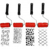 Set of 4 patterned rubber paint rollers featuring different designs - for use with paint and to create relief effects in clay.