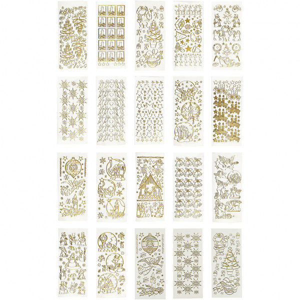 Peel Off Stickers, sheet 10x23 cm, 20 mixed sheets, gold [HOB-28030]