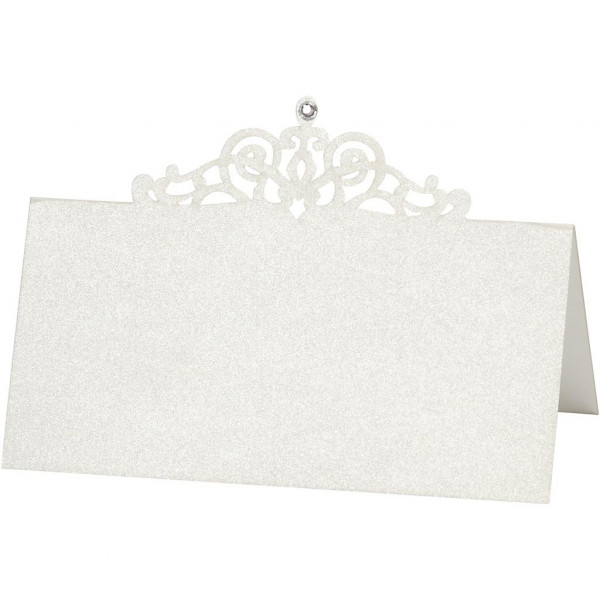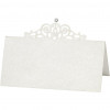 Exclusive double place card with a mother of pearl suface, fine die cut and self-adhesive rhinestones.