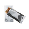 As part of our metallized heat seal bag line, SVP35HS is ideal for packaging items like powdered mixes, supplements and ground coffee. Measuring 75 x 140mm, this metallic silver bag comes open on the top (width side) and also has a 13mm bottom seal and a 8mm back-center seal. This 65micron metallized heat seal bag provides protection against UV lighting, moisture and oxygen. It is heat sealable using a standard hand sealer and features tear notches at both ends for easy opening. Food Safe.