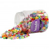 An assortment of plastic beads in a variety of different colours and shapes - packed in practical bucket.