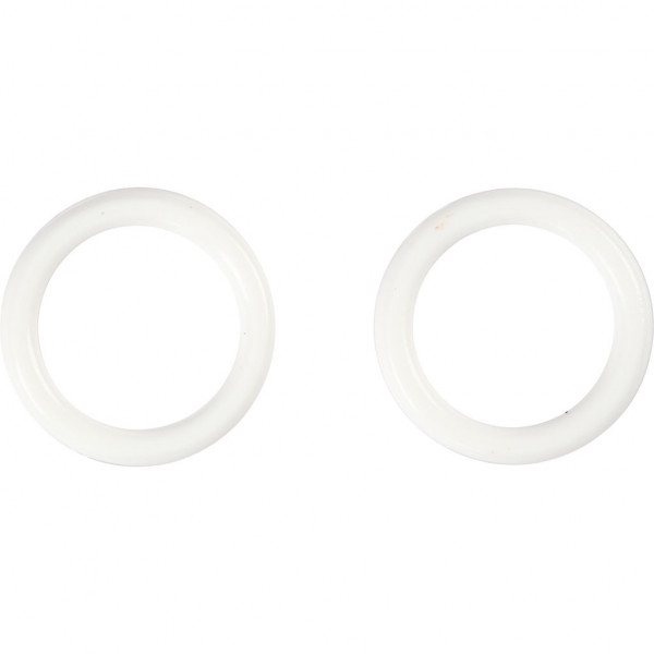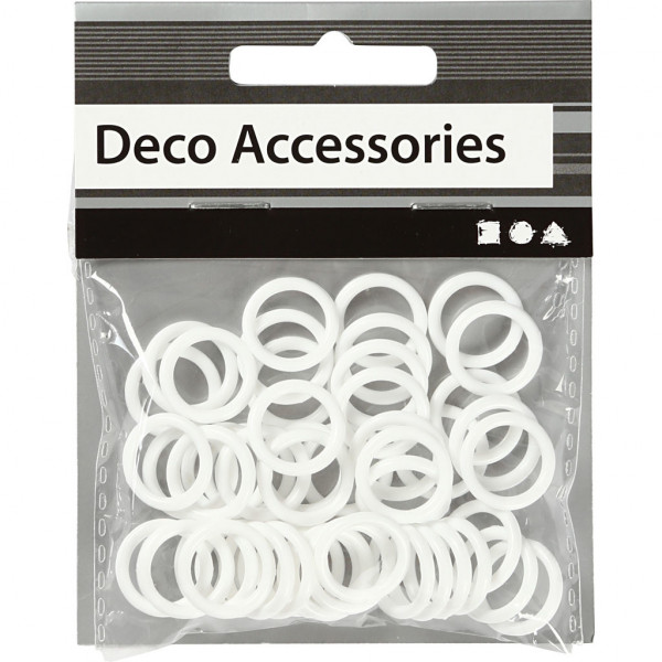 Small rings / curtain rings of strong coloured plastic. Can be used for example on Christmas calendars or on gifts.