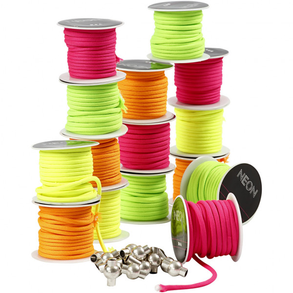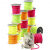 An assortment of semi-gloss polyester string for macramé bracelets.