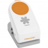 Heavy punch from Fiskars. Punches wood veneer (max 1 mm), cork (max 1 mm), artificial leather (max 0.9 mm), corrugated cardboard (max. 1.38 mm), cardboard (max. 2.4 mm) and EVA Foam (max 1.5 mm).