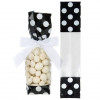 Are you looking for a cute way to package gifts and treats? The G1BW is our side gusseted bag that has a black with white polka dots print on the top and bottom. At 51 x 48 x 241 mm, this bag is a perfect fit for candy, gummies, wrapped chocolates, and more. The center of the bag is clear to reveal what's inside. The laminated material is 40 micron thick and provides a polished presentation to showcase your product. The bottom is sealed for added durability, so this package is not cute but reliable. Add a colorful ribbon or bow to accessorize and seal the bag. Printed gussets can be heat sealed for a more secure closure.