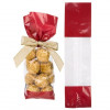 The G2RD printed side gusset bag has a red top and bottom to add a hint of glamour. This laminated bag measures 67 x 48 x 273 mm and is an excellent choice for holiday and romantic gifts like artisan chocolates, popcorn, Biscotti, chocolate-dipped pretzels, candy, and more. Side gussets expand for bulkier products and the bottom is sealed for added strength, making this a versatile option for a variety of products. The material is 40 micron thick and made from high clarity plastic film. The middle section of this bag is transparent to allow your product to be seen. Ribbons, bows, and twist ties can be used to accessorize and seal the bag. For a tamper-proof closure, this bag is also heat sealable.