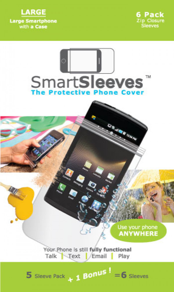Clear laminated protective smart phone sleeves (with case) with zipper closure, custom fitted. Designed to protect your various kind of smart phones from potentially damaging environments including water, dust, sand, germs, grit en grime. Price is per bundle of 6 pieces. Size 8.6x14.6 cm.