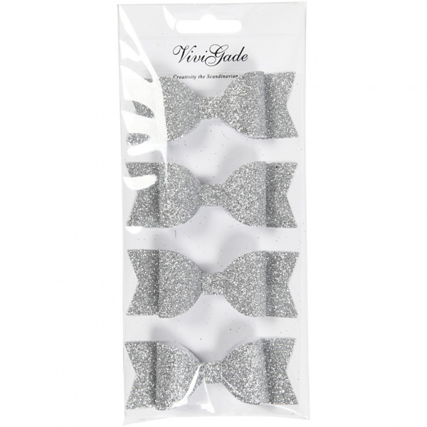 Paper Bow, size 31x85 mm, 4 pcs, silver glitter [HOB-24788]