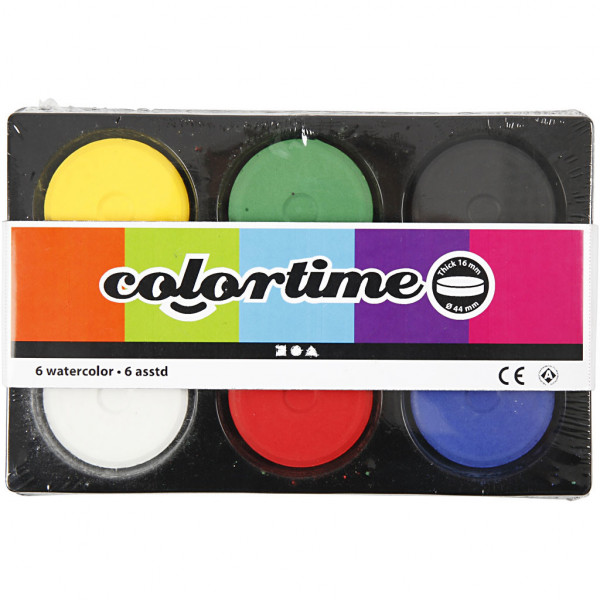 Pack with 6 different colours in a practical plastic palette.