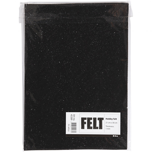 Craft Felt, A4 21x30 cm, thickness 1 mm, 10 sheets, black [HOB-45389]
