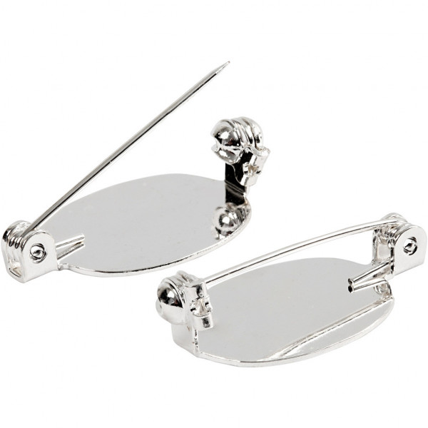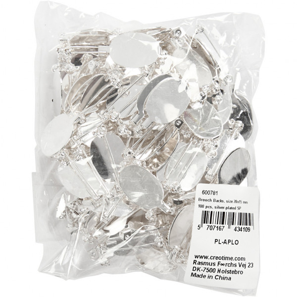 Brooch Backs, size 20x15 mm, 100 pcs, silver-plated [HOB-600781]