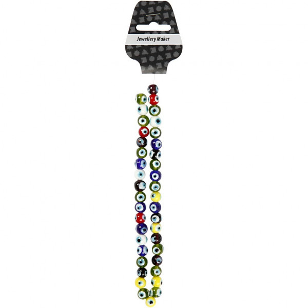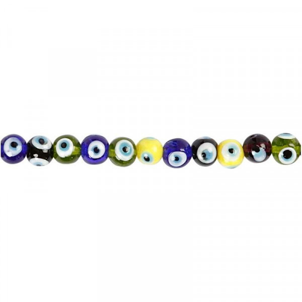 Eye Beads, D: 10 mm, hole size 1.2 mm, 40 cm, asstd colours [HOB-69908]