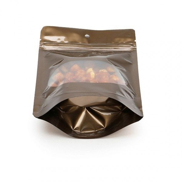 This Oval Window Zipper Pouch holds 113 gram. The inner dimensions are 12.1 x 6.4 x 17.1 cm.