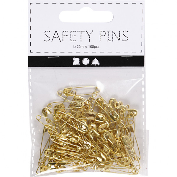 Safety Pins, L: 22 mm, thickness 0.6 mm, 100 pcs, gold [HOB-41136]