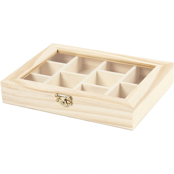 Box with Glass Lid, size 15.5x20.5x3.5 cm, hole size 4.3x4.3 cm, 1 pc, pine [HOB-56930]