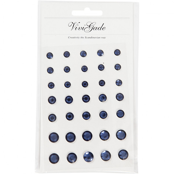 An assortment of self-adhesive rhinestones in a design from Vivi Gade with a facet lace front and a flat back in 3 sizes.