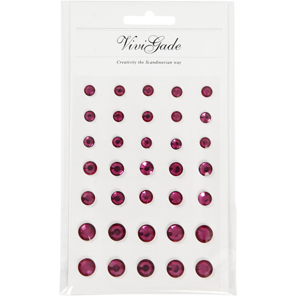 An assortment of self-adhesive rhinestones in a design from Vivi Gade with a facet lace front and a flat back in 3 sizes.