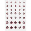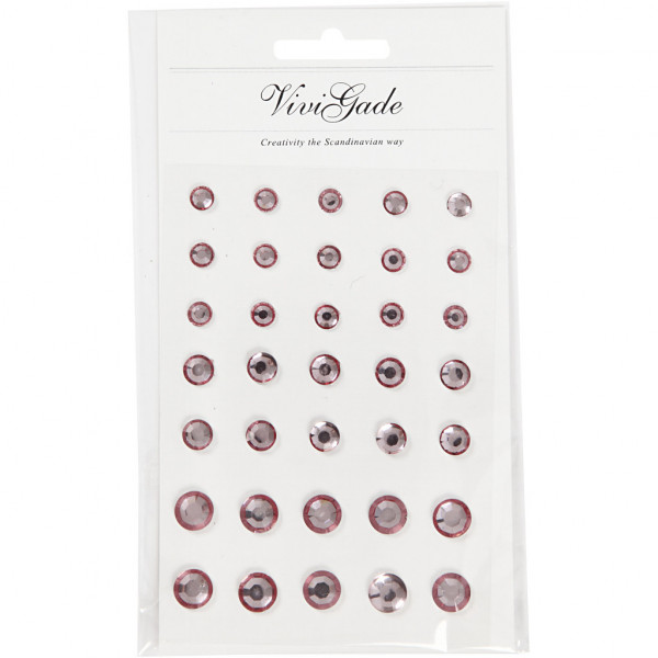 An assortment of self-adhesive rhinestones in a design from Vivi Gade with a facet lace front and a flat back in 3 sizes (round cone).