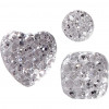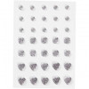 An assortment of self-adhesive rhinestones in a design from Vivi Gade with a raise front and a flat back on sheets in 3 designs (round, square, heart).