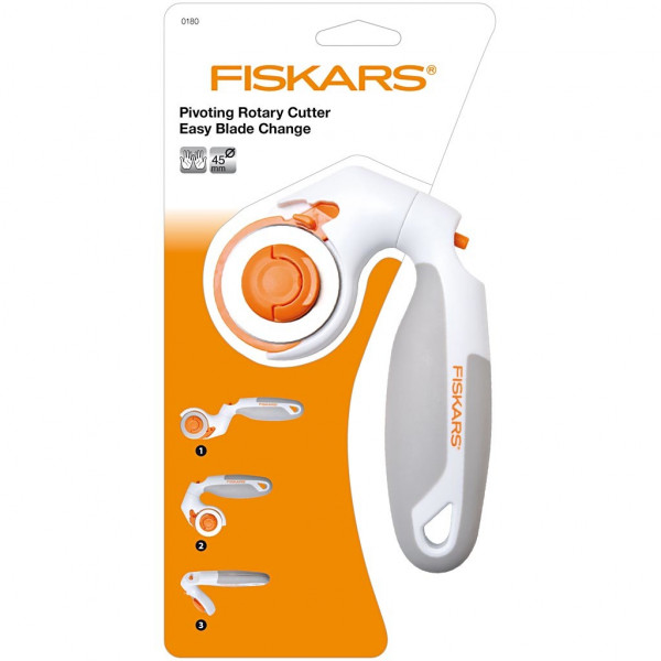 Fiskars rotary cutter with an ergonomic soft grip handle and 4 different blade positions.