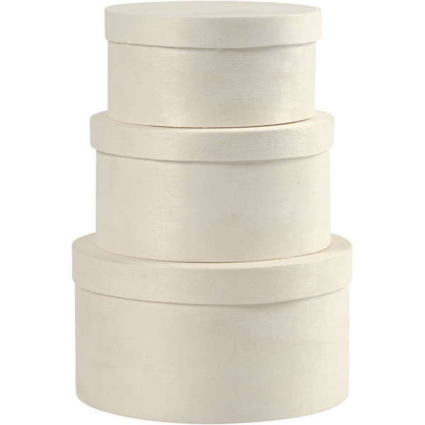Round Wood Chip Box, D: 10+11+13 cm, H: 5+6+7 cm, 3 pcs, poplar wood [HOB-575180]