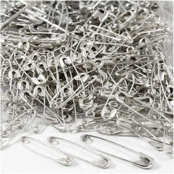 Safety Pins, L: 28+31+36 mm, thickness 0.7-0.8 mm, 600 pcs, silver [HOB-41130]