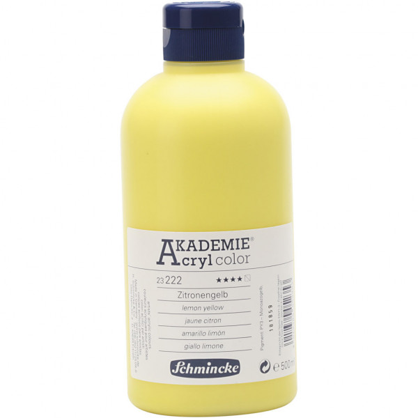 Schmincke AKADEMIE® Acryl color, semi-transparent, good fade resistant, 500 ml, lemon yellow (222) [HOB-31853]